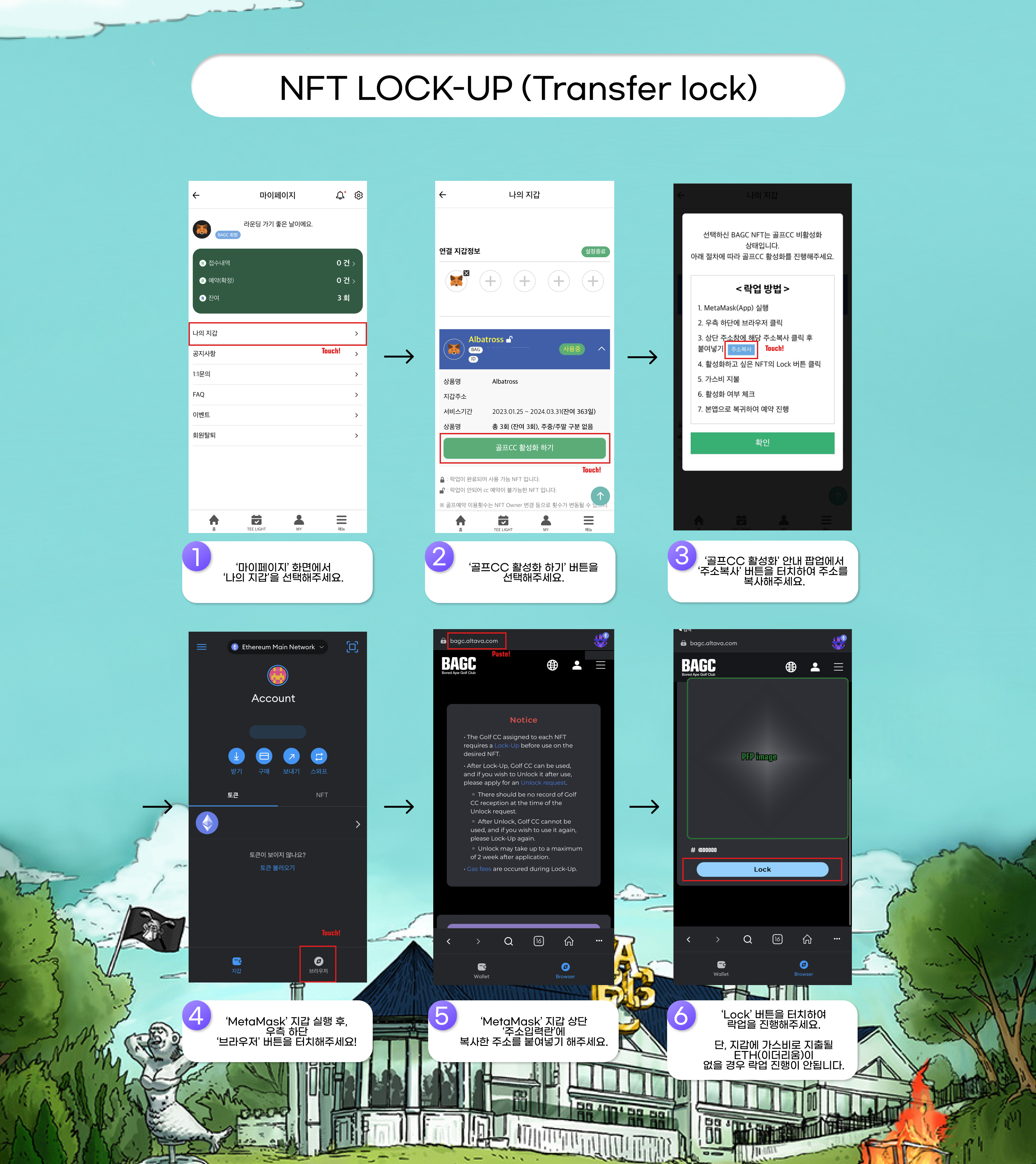 In the case of the Golf CC reservation system utilizing NFTs, a process of authenticating and implementing a Lock-up mechanism for prevention of abusing is necessary. By following the instructions in the manual below, you can proceed with Golf CC reservations.